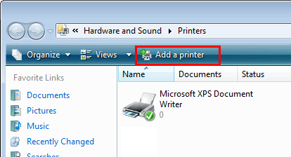 In Windows Vista/Server 2008, click [Control Panel] - [Hardware and Sound] - [Printers] from the Start menu. When [Control Panel] is displayed in Classic View, double-click [Printers].