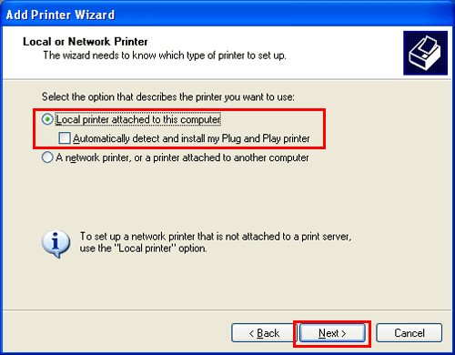 Clear the [Automatically detect and install my Plug and Play printer] check