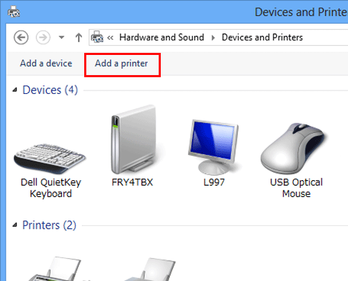 In Windows 8, right-click the Start window, then click [All apps] - [Control Panel] - [Hardware and Sound] - [View devices and printers].