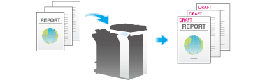 Text such as "PLEASE REPLY" and "DO NOT COPY" are printed on the first page or all pages. You can select the text to be added from the registered fix stamps and arbitrary registered stamps.