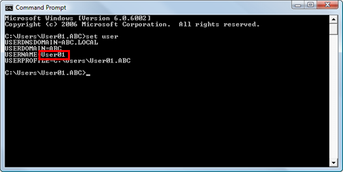 For domain users, type in "set user", and check the user name.