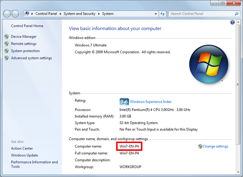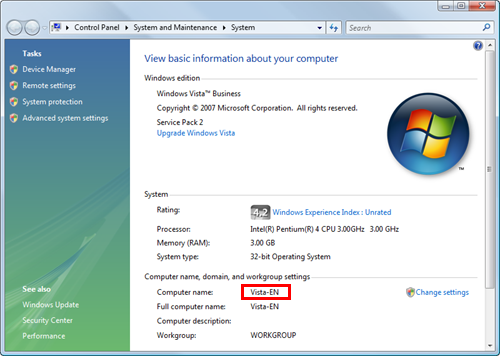 From the Start menu, click [Computer] - [System Properties].