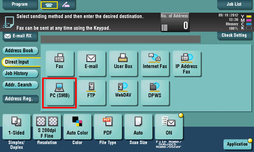 If you log in to this machine using the external server authentication of Active Directory, you can send data to the shared folder without re-entering the authentication information (user ID and password) at SMB transmission.