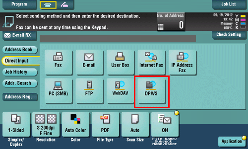 When using a scan transmission from this machine, start the application on a destination computer to import original data, or save original data in a specific folder. For details, refer to Here.