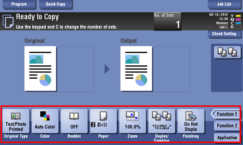 You can check the finishing image of a copy in the Touch Panel before copying.