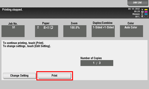 To start copying, tap [Print] or press the Start key.