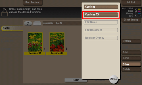 When sending multiple files at the same time, you can combine those files and handle them as a single job. This is called the Combine TX.