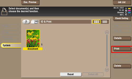 The following explains how to print a file manually from the [ID & Print] User Box.