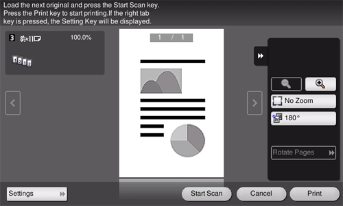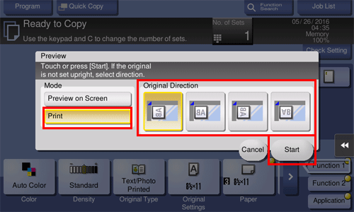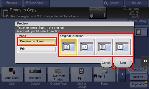 Tap [Preview on Screen], select the original loading direction, then tap [Start].