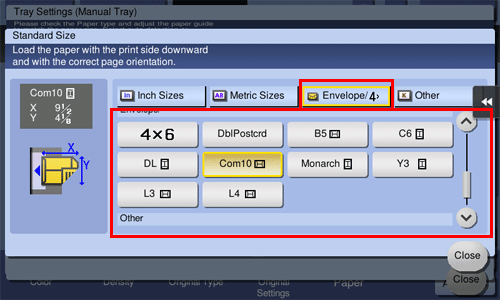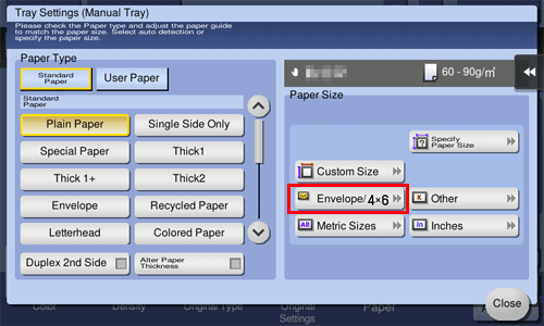 Various sizes of envelopes are available. Specify the correct paper size for the envelopes you have loaded. When the envelope size is specified, the paper type is automatically set to [Envelope].