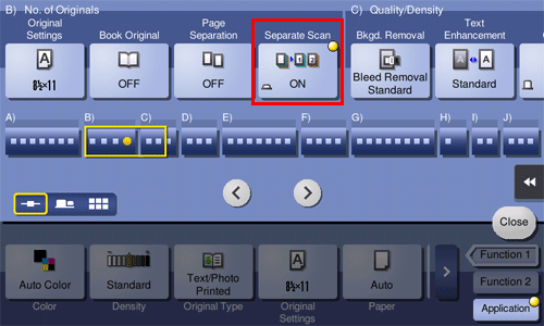The Separate Scan function enables scanning of an original in installments and handling of the resulting copy jobs as a single job.