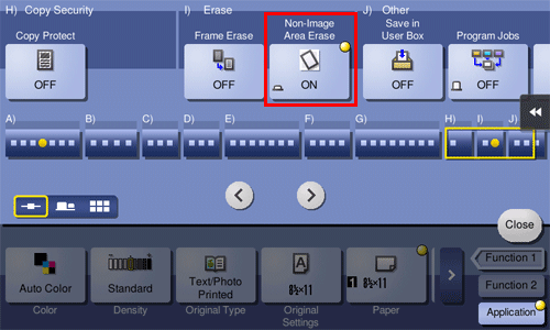 Tap [Application], select [Non-Image Area Erase], then select [ON].