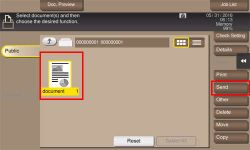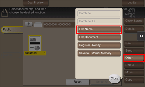 The name of the file saved in the User Box is used as the file name in file transmission. When renaming a file, it is recommended to do so with considerations to the conditions of the destination server.