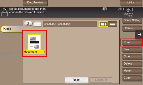 Perform 2-sided printing for the data of the 2-sided original saved in the User Box to output a printed matter just like the original.