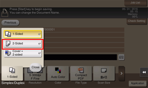 Tap [Simplex/Duplex], then tap [2-Sided].