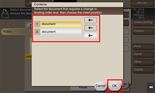 To print, tap [Other] and then [Combine]. To send, tap [Other] and then [Combine TX].
