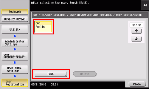 Select [User Authentication/Account Track] - [User Authentication Settings] - [User Registration].