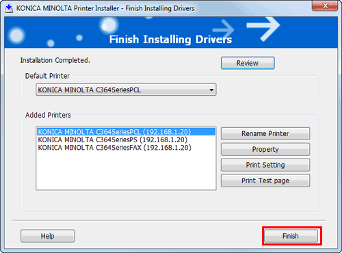 When you finish installing the printer driver, configure the default settings of the printer driver. For details, refer to Here.