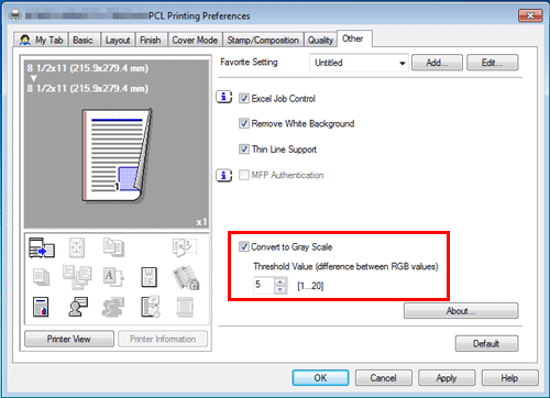 [Convert to Gray Scale] is available only when the printer driver for Windows (PCL) is used.