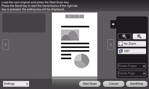 After all originals have been scanned, tap [SendNow] or press the Start key.