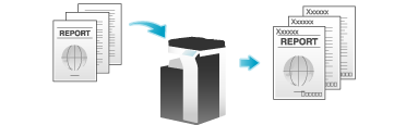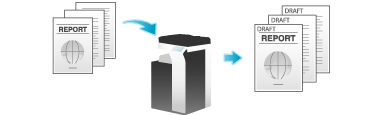 Text such as "PLEASE REPLY" and "DO NOT COPY" are printed on the first page or all pages. You can select the text to be added from the registered fix stamps and arbitrary registered stamps.
