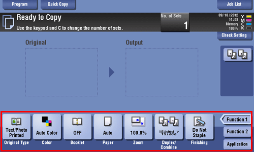 When you register a copy program, you can recall the combination of various copy settings from the main screen with simple action.