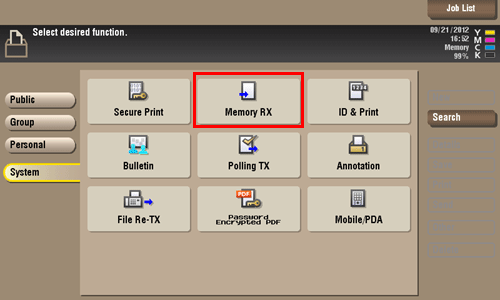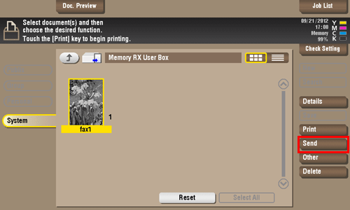 The optional Upgrade Kit UK-204 and i-Option LK-110 are required to send a fax saved in the Memory RX User Box.