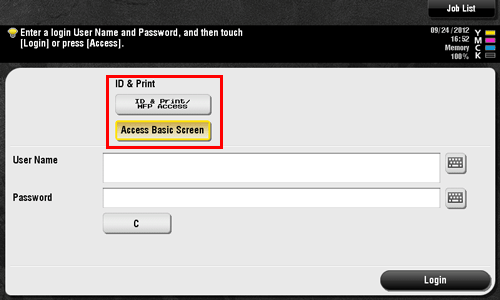 In the [ID & Print] subwindow, tap [Access Basic Screen].