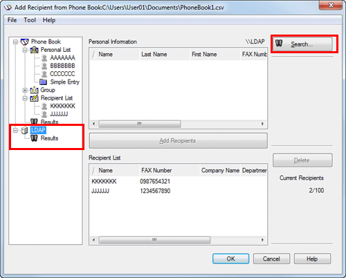 If you are using the LDAP server or the Active Directory of Windows Server, you can search for a recipient on the server.