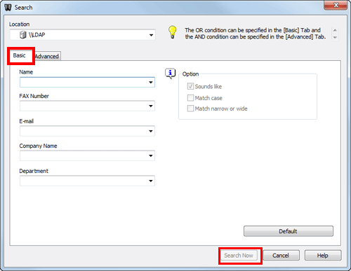 The [Basic] search displays recipients which meet any of search conditions. Enter characters to search, then click [Search Now].