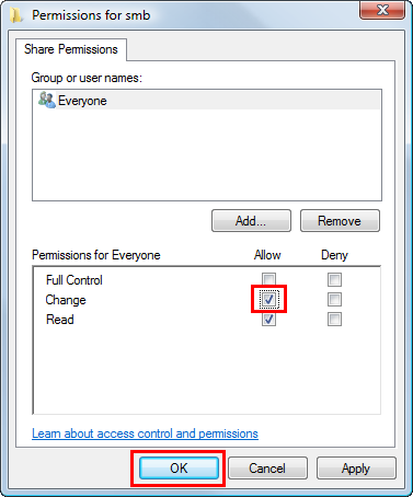 Select the check box to permit [Change], then click [OK].