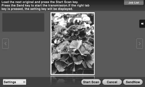 After all originals are scanned, tap [Send Now] or press the Start key.