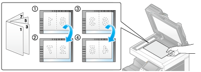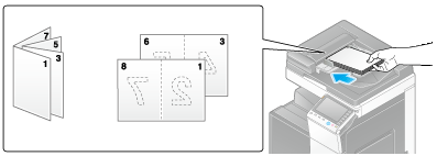 When you use both the book original and 2-sided copy functions and staple the copied sheets, you can easily create simple books.