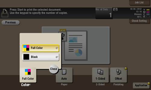 Select a Color mode to use to print files.