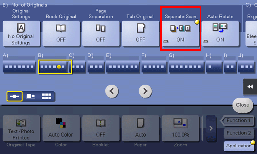 Tap [Application] - [No. of Originals] - [Separate Scan], and set to [ON].