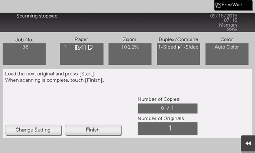 Load the next original, then tap [Change Setting].