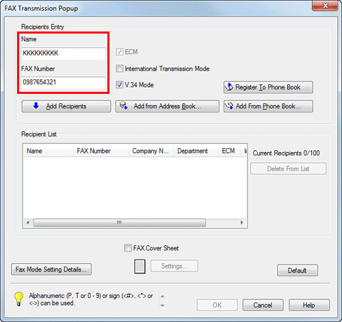 • When you select a recipient from the Phone Book of the PC, click [Add From Phone Book...]. For details, refer to Here.