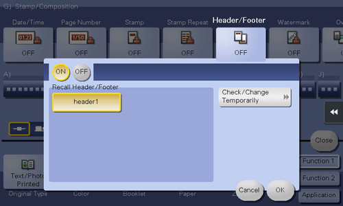 [Recall Header/Footer] | Select the header/footer to be printed. Select the header/footer from among those registered in advance. |