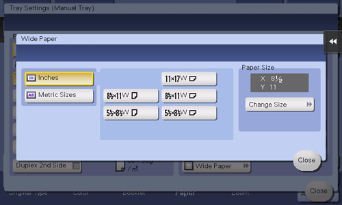 [Inches] | When loading wide paper in inch size into paper tray, select the paper size. |