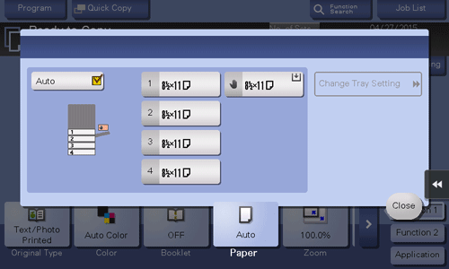 [Change Tray Setting] | If necessary, change the size and type settings of the paper loaded in the selected paper tray. For details, refer to Here. |