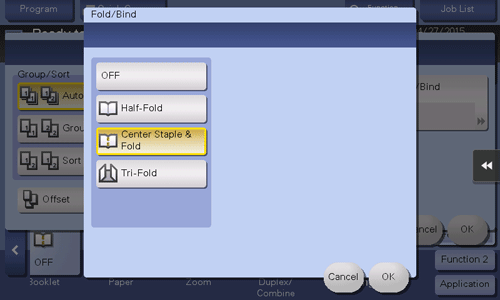 • If Center Staple is enabled, [Booklet] is set to [ON] automatically.