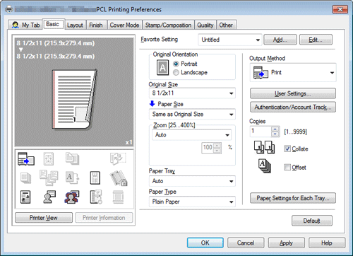 When you use this machine for the first time, check that information such as what options are installed in this machine and whether authentication settings have been configured is correctly reflected to the printer driver.
