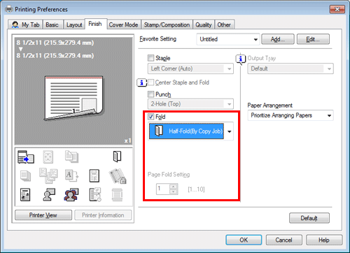 In the [Finish] tab, select the [Fold] check box, and select the folding mode.
