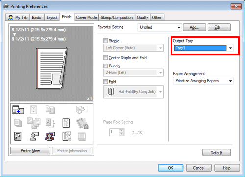 In [Output Tray] in the [Finish] tab, select the tray to which printed sheets are output.