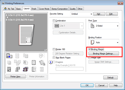 In [Binding Position] in the [Layout] tab, specify the margin position.