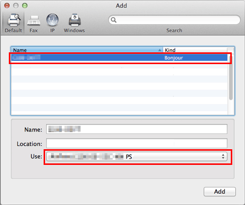 Select [Select Software...] from [Use:], then click the driver of the desired printer from the list that is displayed in another window.