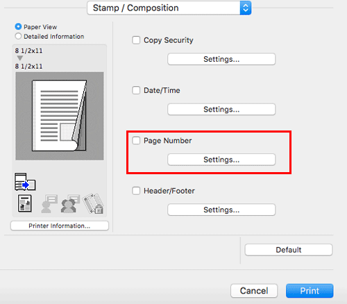 As necessary, click [Settings...] to change the print position and the page from which the page number printing starts.