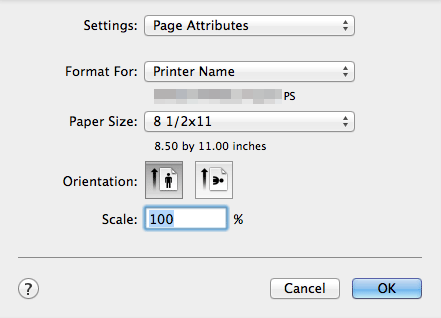 [Scale:] | Specify the zoom ratio to enlarge or reduce the original image. The setting range differs depending on the Mac OS version. |