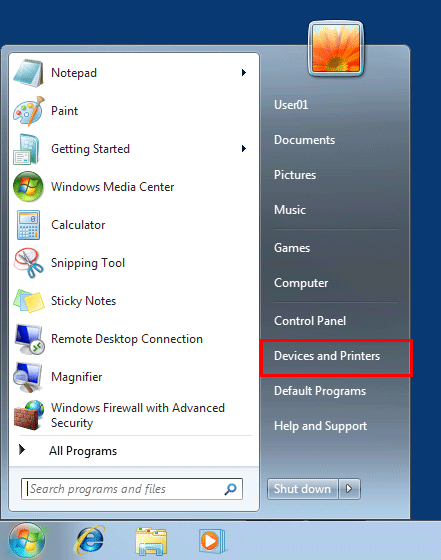 If [Devices and Printers] is not displayed, click [Control Panel] - [View devices and printers].
