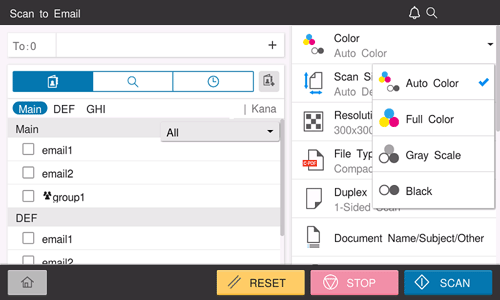 [Auto Color] | Automatically determines [Full Color] or [Gray Scale] to fit the original color when scanning the original. |